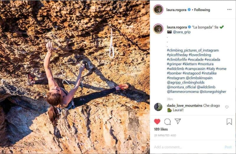 18 year old Laura Rogora has climbed the 9a “La Bongada” in Margalef. Just the day before she onsighted an 8b+ route, and a few months ago got three Gold Medals in Youth Worlds, plus an invite to the 2020 Olympics!